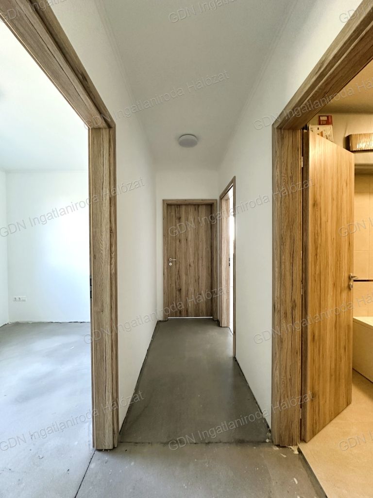 A B6 megjelölésű első emeleti lakás 58,2 m2 alapterületű. Az amerikai konyhás nappalin túl 2 szoba, fürdőszoba, mellékhelyiség, közlekedő és előszoba kapott teret a lakásban. A közösségi térből közelíthető meg a 2 m2-es erkély.