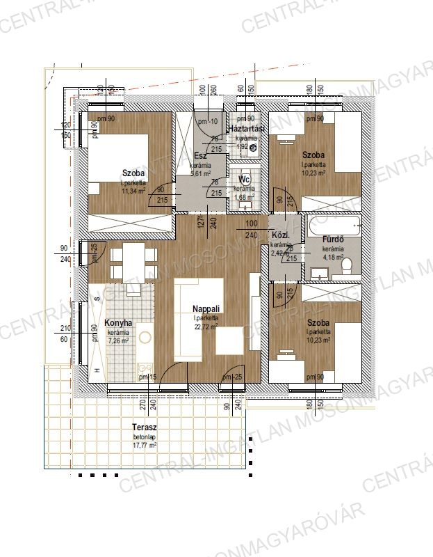 -Az építész alaprajz szerinti méretek „nyers” méretek, vakolatlan falak közötti távolságot jelentik.