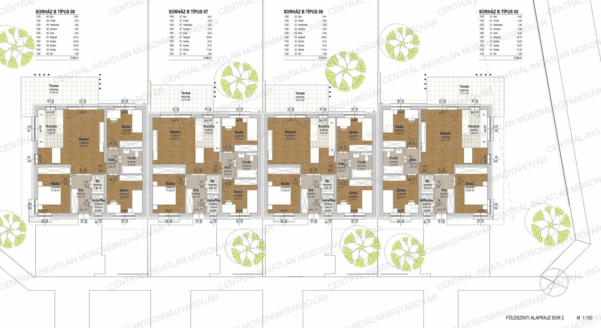 Mosonmagyaróvár fiatal kertvárosi részén új sorház jellegű építéssel, családi házakat kínálunk. A zárt sorú beépítés 4 db, önálló házat fog egybe.