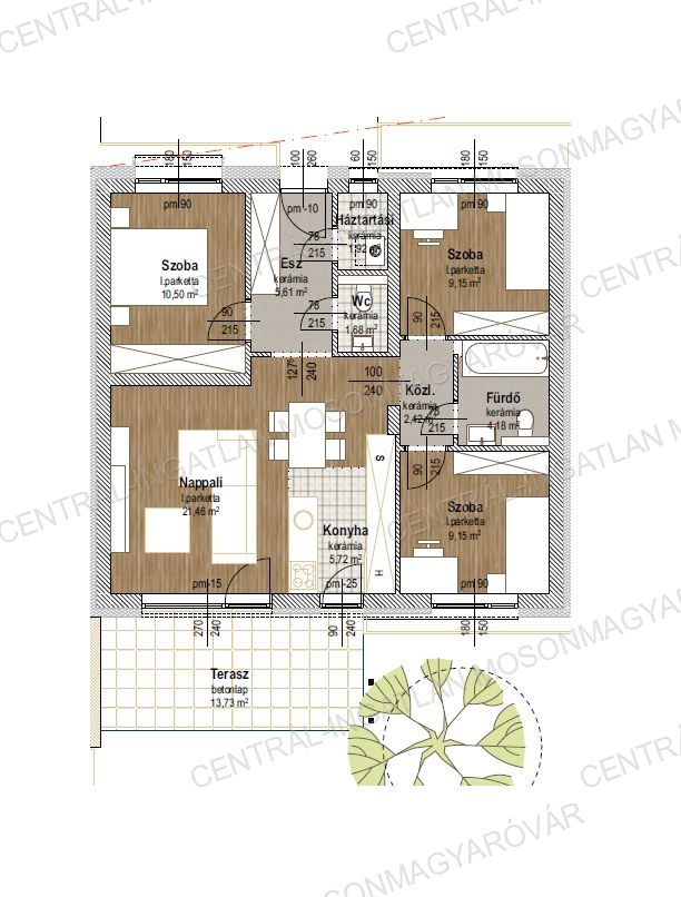 -Az építész alaprajz szerinti méretek „nyers” méretek, vakolatlan falak közötti távolságot jelentik.