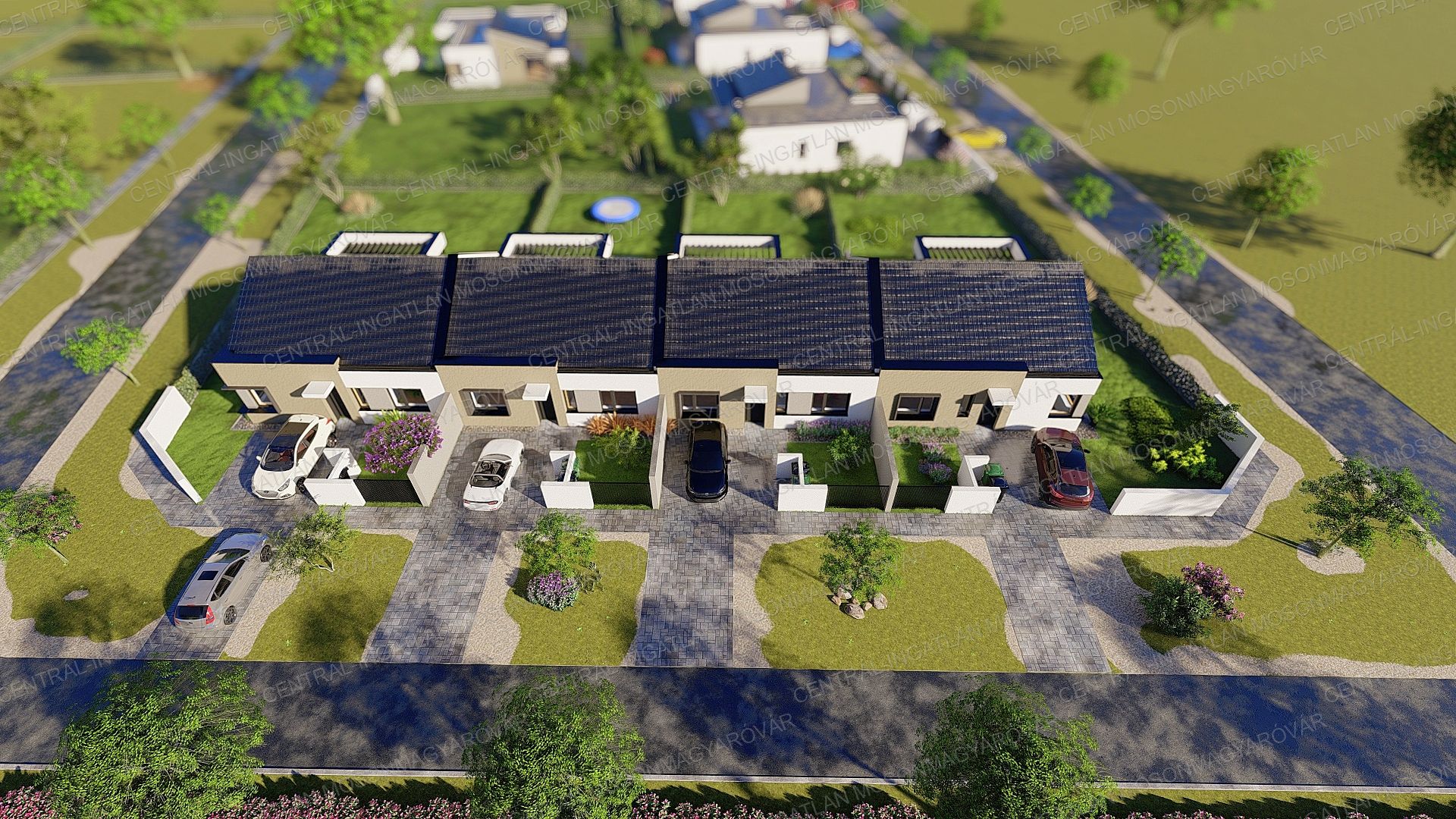 Mosonmagyaróvár fiatal kertvárosi részén új sorház jellegű építéssel, családi házakat kínálunk. A zárt sorú beépítés 4 db, önálló házat fog egybe.