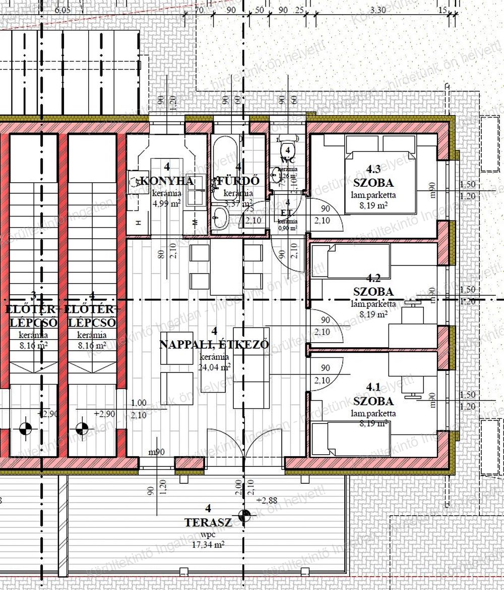 Cegléden, új utcában, új lakóparkban épülő, 4 lakásos társasház 1. emeletén 70 m²-es, 4 szobás, erkélyes (13 nm), kb. 100 nm kizárólagos használatú kerttel és a társasház udvarán belül egy darab, burkolt kocsibeállóval rendelkező tégla lakás eladó.