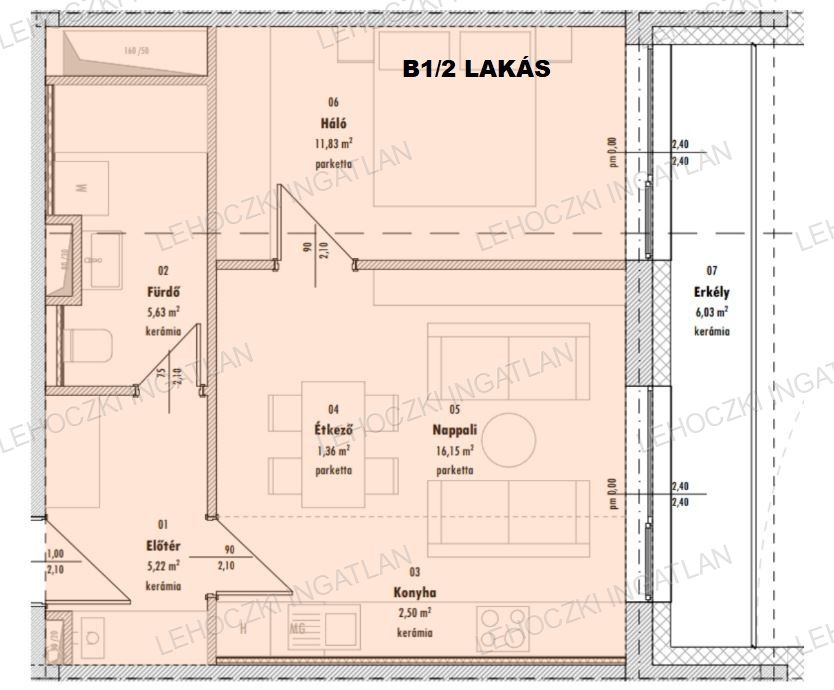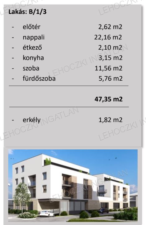 B.1.3 lakás 47.35 nm-es, amelyhez tartozik egy 1.82 nm-es erkély. 48.740.000,-Ft