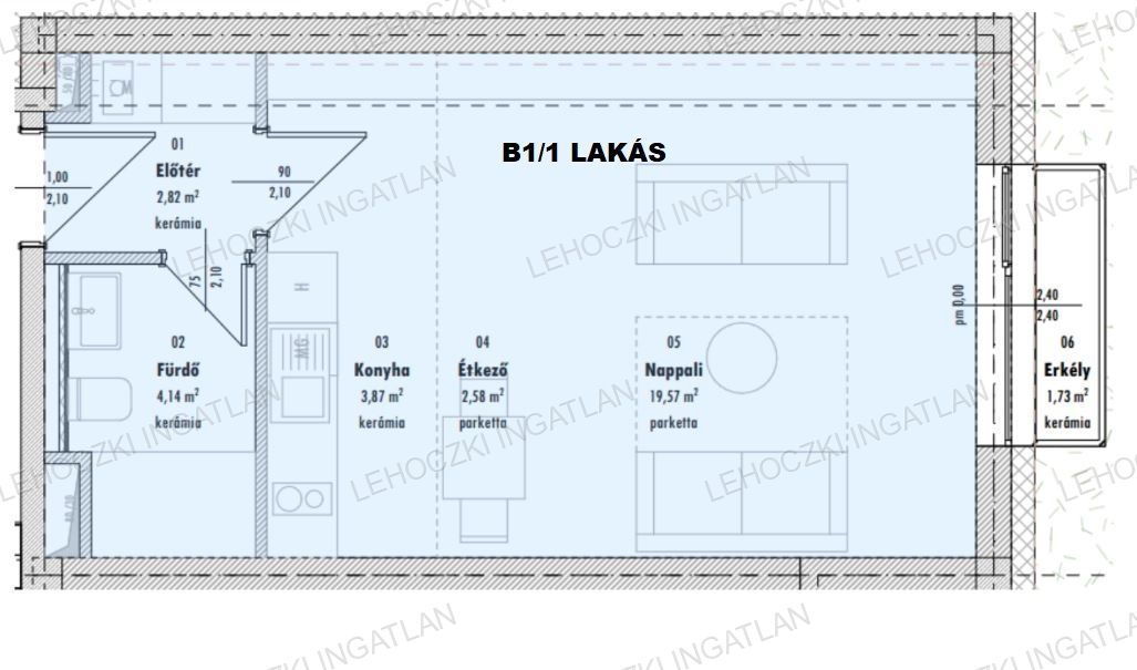 B.1.1 lakás 32,98 nm-es, amelyhez tartozik egy 1,73 nm-es erkély. 40.900.000,-Ft