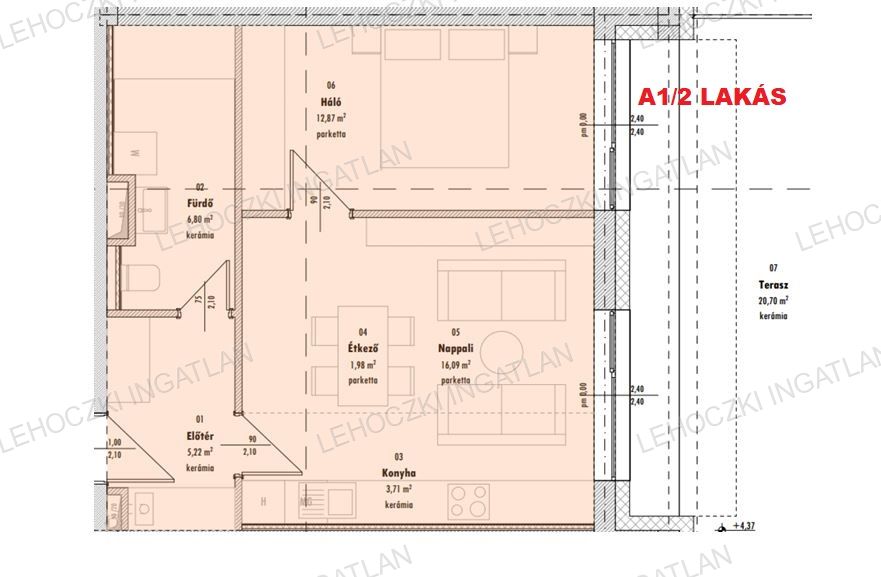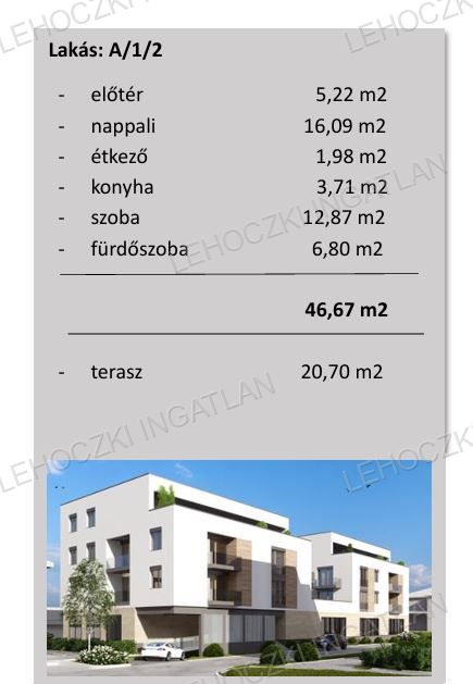 A.1.2 lakás 46,67 nm-es, amelyhez tartozik egy 20,70 nm-es terasz. 57.590.000,-Ft