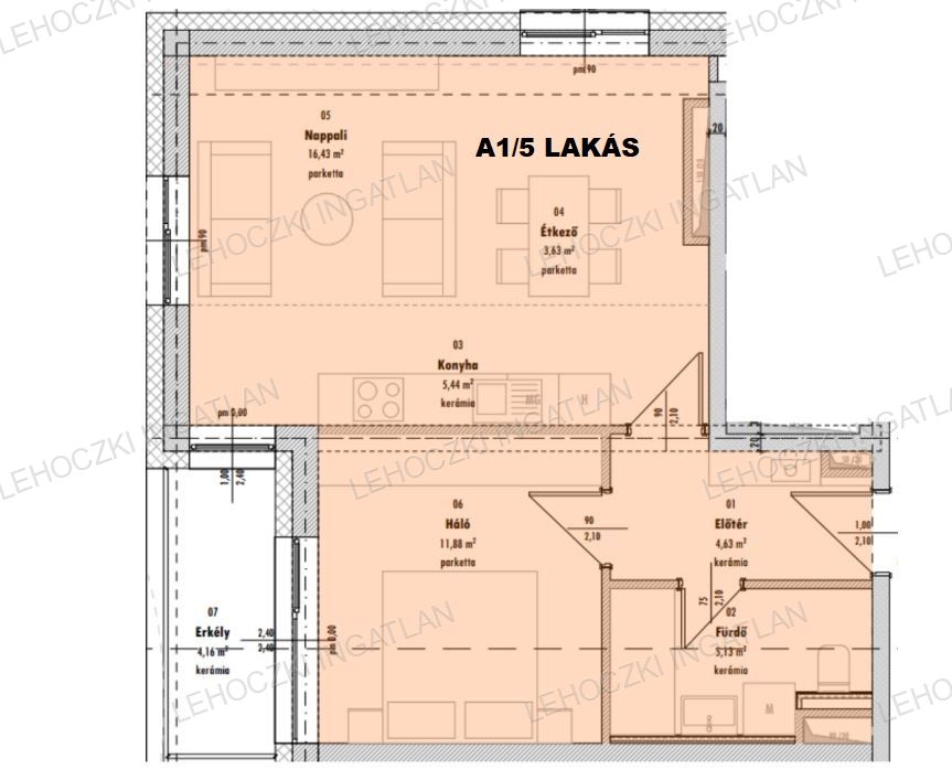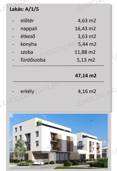 A.1.5 lakás 47,14 nm-es, amelyhez tartozik egy 4,16 nm-es erkély. 49.710.000,-Ft