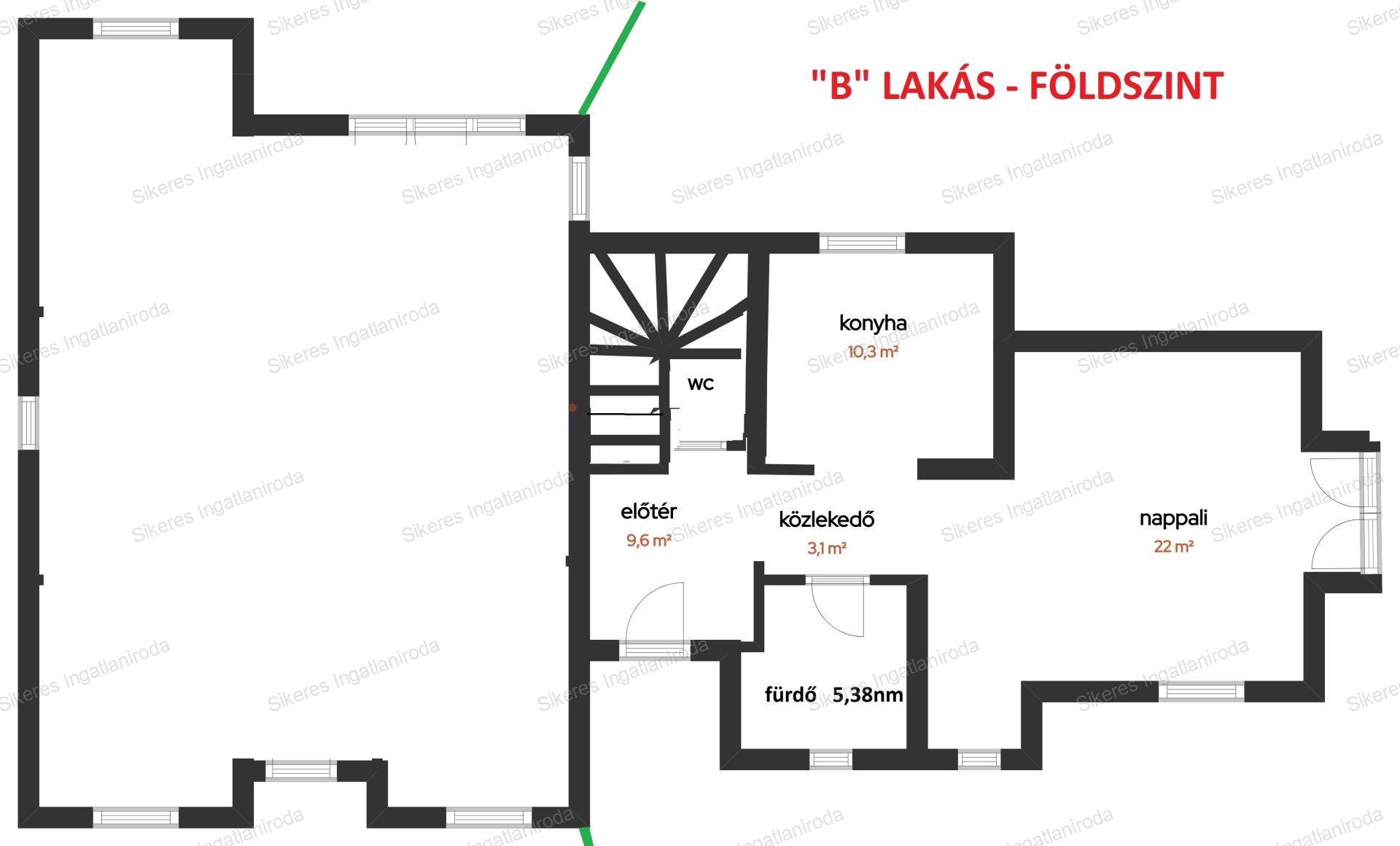 Az eladó társasházi lakás, átgondolt alaprajzi kialakítással: a földszinten egy világos, 22 m²-es nappali biztosítja a családi együttlétek központi helyét, ehhez csatlakozik az étkező és a konyha, valamint egy praktikus közlekedő, fürdőszoba, külön mellékhelyiség, és a lépcső alatt kialakított gépház. A bejárati előtér tágas és kényelmes, közvetlen kapcsolattal a nappali felé.